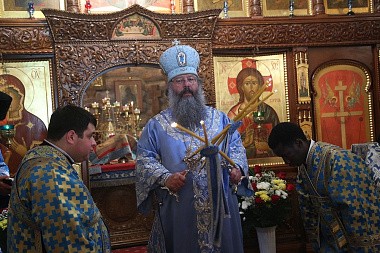 Его Высокопреосвященству сослужили: наместник мужского монастыря во имя Царственных страстотерпцев архимандрит Пимен (Адарченко); руководитель Миссионерского отдела Екатеринбургской епархии иерей Даниил Рябинин; духовенство монастыря и епархии.