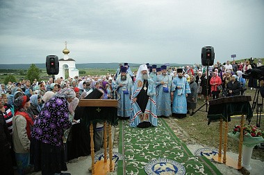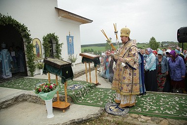 По завершении богослужения состоялся праздничный крестный ход до святого источника в честь Боголюбской иконы Божией Матери, где правящий архиерей возглавил молебен.