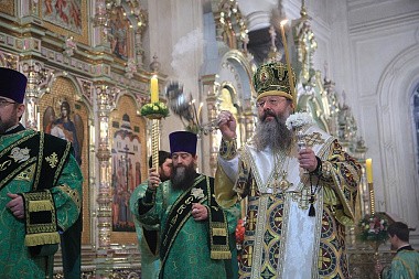 Его Высокопреосвященству сослужили: епископ Нижнетагильский и Серовский Иннокентий, епископ Каменский и Алапаевский Мефодий, а также гости епархии и духовенство митрополии.