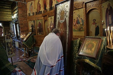 Накануне владыка совершил в этом же храме всенощное бдение с чтением акафиста преподобному Сергию.