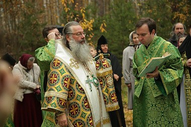 Правящий архиерей совершил благодарение Богу, выразил благодарность приснопамятному Святейшему Патриарху Алексию II, митрополиту Викентию, А.А. Козицыну за возведение Царской обители и вместе с ней храма преподобного Сергия Радонежского.