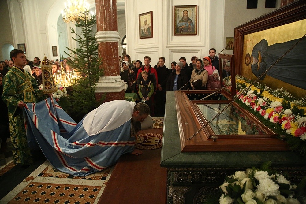 По завершении богослужения преосвященные архиереи совершили молебен на гражданское новолетие с коленопреклоненными молитвами, после чего приложились к мощам святого Симеона.