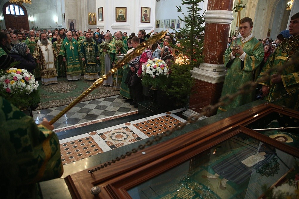 В день, в который совершилось общецерковное признание его святости, в день, когда мы сегодня здесь собрались у его святых мощей, и в день, когда мы заканчиваем один гражданский год от Рождества Христова и начинаем другой, поздравляю вас всех с этим праздником. Хотел бы нам всем пожелать, чтобы мы, вернувшись в свои дома, сохраняли эту милость и благость, которую получили и стараемся получить здесь у праведного нашего Симеона Верхотурского.