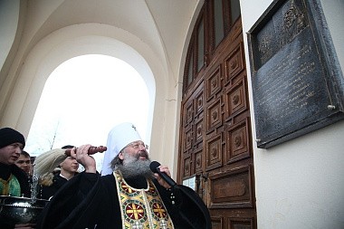 Торжественный чин освящения мемориальных плит по окончании Божественной литургии возглавил митрополит Екатеринбургский и Верхотурский Кирилл.