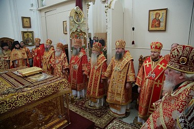 Затем митрополит Кирилл обратился с архипастырским словом к участникам богослужения, напомнив, что в этот день 30 лет назад совершилось возвращение мощей праведного Симеона в церковную жизнь.