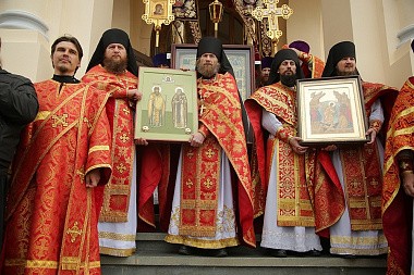 По окончании богослужения состоялся праздничный крестный ход вокруг собора, во время которого священники пронесли ковчег с частицей мощей святого праведного Симеона Верхотурского.