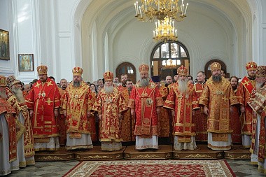 Его Высокопреосвященству сослужили митрополит Курганский и Белозерский Иосиф, епископ Каменский и Камышловский Мефодий, епископ Щигровский и Мантуровский Паисий, епископ Нижнетагильский и Невьянский Евгений, епископ Серовский и Краснотурьинский Алексий, епископ Алапаевский и Ирбитский Леонид, наместник монастыря игумен Иероним (Миронов) с братией обители в священном сане, многочисленное духовенство (более 120 клириков) Екатеринбургской митрополии.
