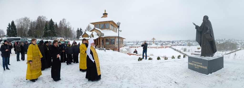 11 февраля 2018 года митрополит Калужский и Боровский Климент совершил освящение памятника преподобному Пафнутию Боровскому, установленного на территории подворья Свято-Пафнутьева Боровского монастыря у храма в честь Покрова Пресвятой Богородицы г. Боровска.