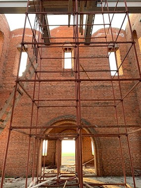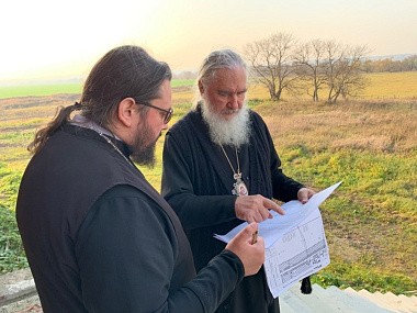 Владыка ознакомился с ходом восстановительных работ, пообщался со строителями и настоятелем подворья иеромонахом Саввой (Петрушко).