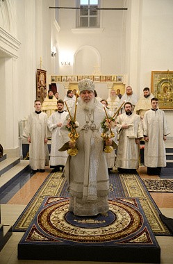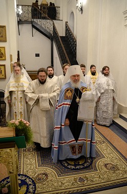 После отпуста архиерей и сослужившее ему духовенство пропели тропарь, кондак и величание празднику.
