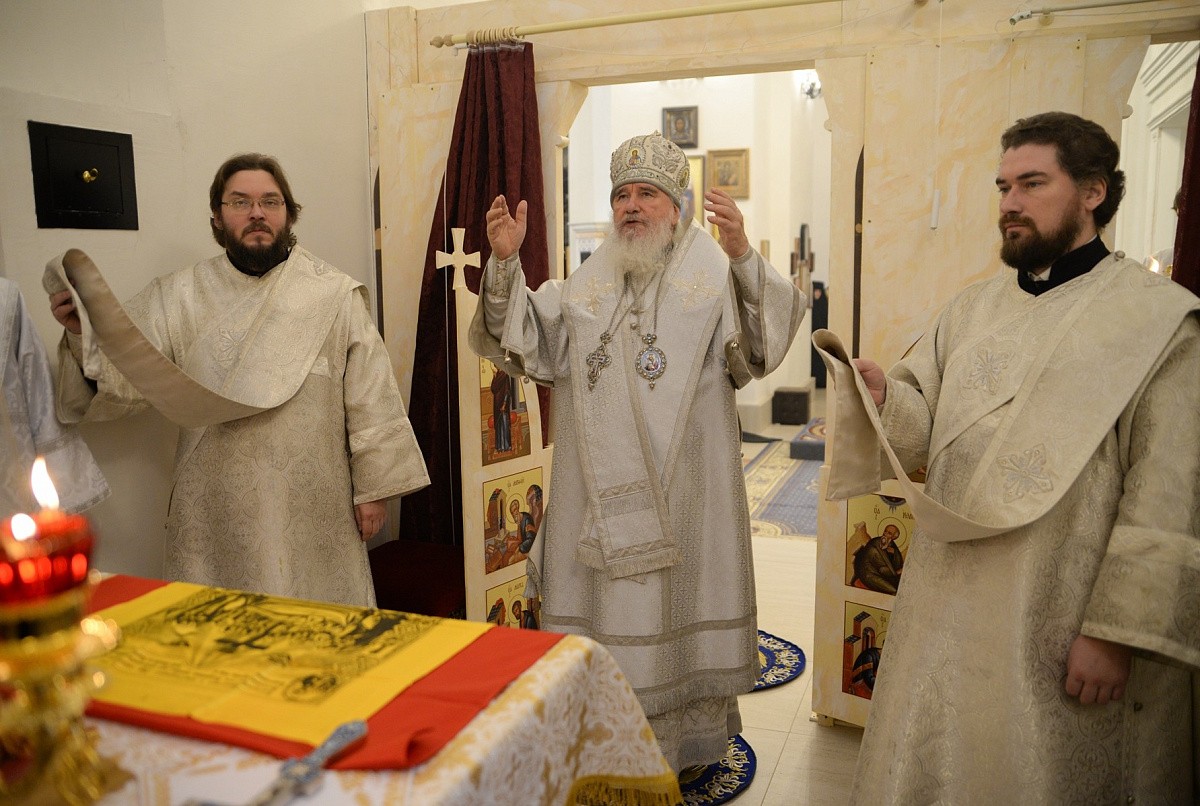 На сугубой ектении были вознесены особые прошения о единстве святого православия, после чего глава Калужской митрополии вознес молитву о мире на Украине.
