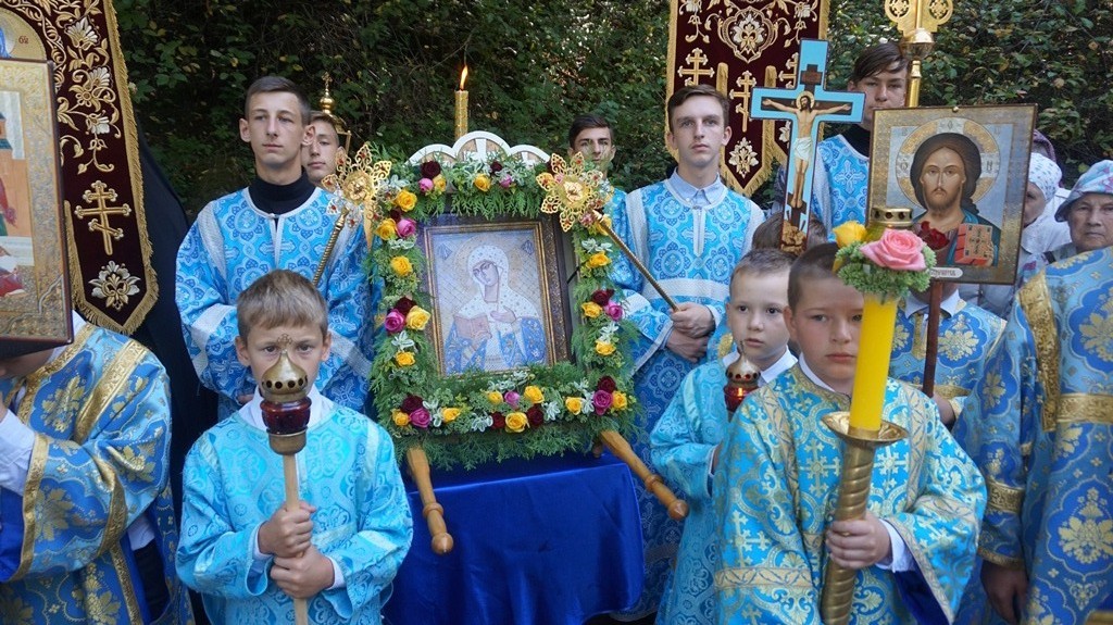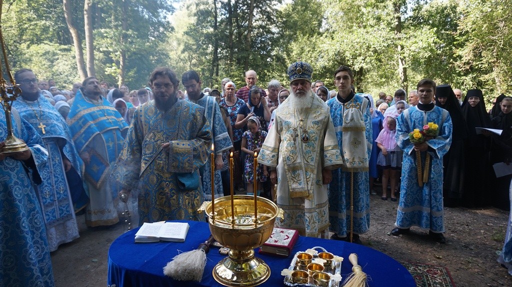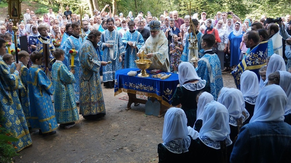 По окончании литургии в храме было совершено молебное пение Пресвятой Богородице, которое продолжилось крестным ходом на святой источник, где состоялось малое освящение воды. После совершения уставных молитвословий митрополит Климент окропил верующих святой водой, призвав на всех Божие благословение и помощь Пресвятой Владычицы Богородицы и Приснодевы Марии.