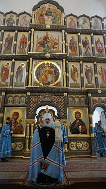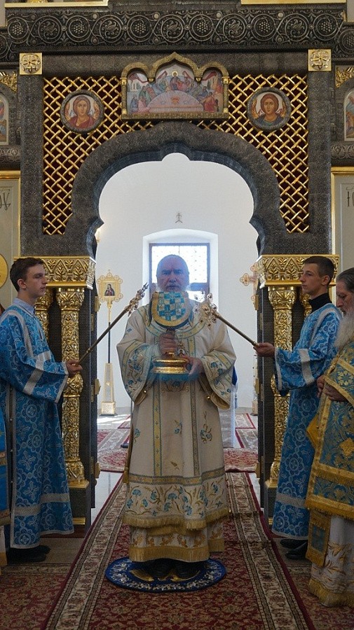 По возвращении в храм перед чудотворным Калужским образом была пропета молитва «Царица моя Преблагая». Затем владыка поздравил всех с праздником и произнес проповедь перед собравшимися.
