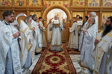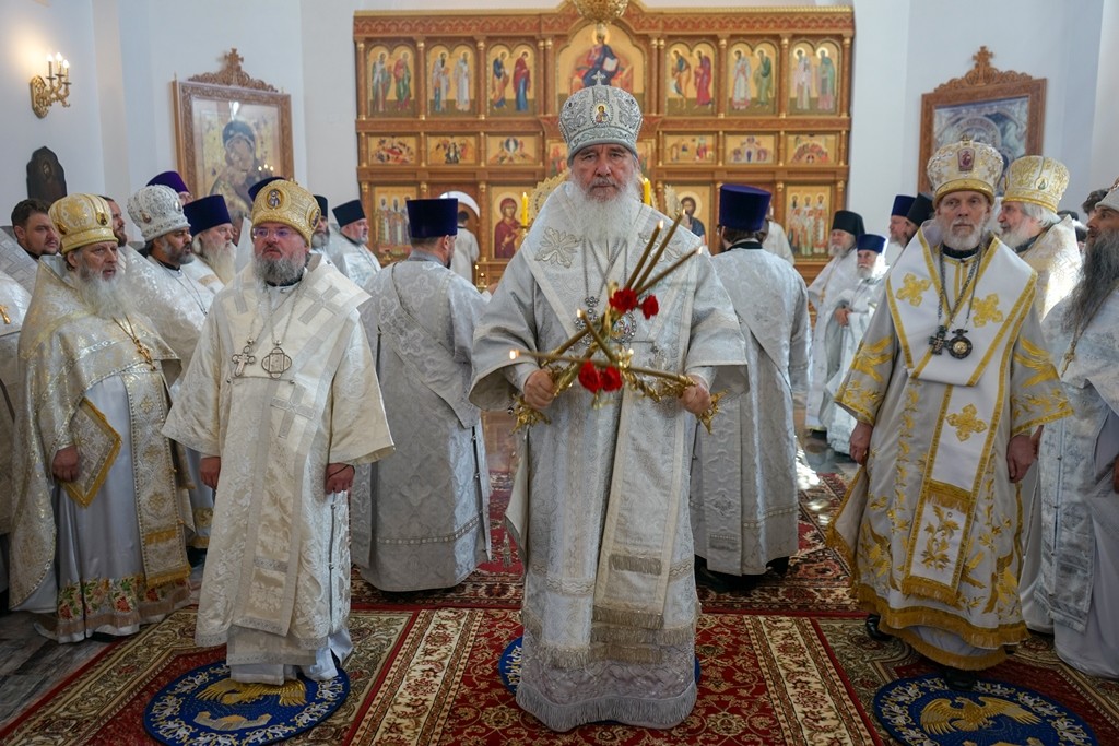 За богослужением архипастырям Калужской митрополии сослужили: благочинный г. Калуги архимандрит Донат (Петенков), наместник Свято-Успенской Тихоновой пустыни архимандрит Тихон (Завьялов), секретарь Калужской епархии игумен Мефодий (Пронькин), отцы благочинные, настоятели и клирики приходов и монастырей Калужской, Козельской и Песоченской епархий.