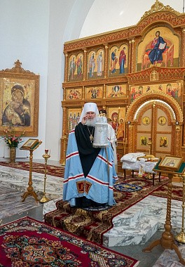 За праздничной трапезой выступили воспитанницы детского приюта «Отрада» при Свято-Никольском Черноостровском монастыре. Девочки поздравили Высокопреосвященнейшего владыку с торжественным событием.