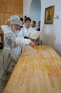 8 августа 2018 года в мужском монастыре Успения Пресвятой Богородицы Калужская Свято-Тихонова пустынь митрополит Калужский и Боровский Климент в сослужении архиепископа Песоченского и Юхновского Максимилиана и епископа Козельского и Людиновского Никиты совершил Божественную литургию и великое освящение храма в честь трех святителей: Василия Великого, Григория Богослова и Иоанна Златоустого.