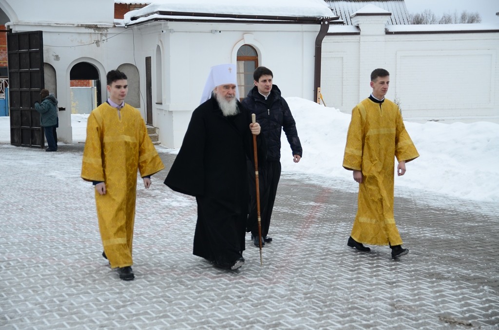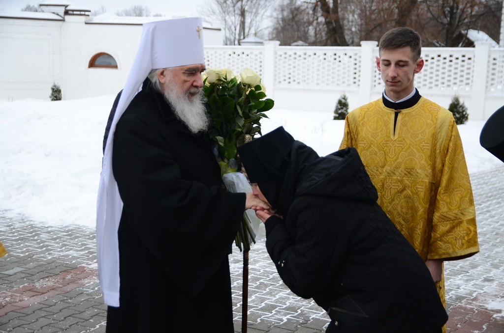Высокопреосвященнейшему архиерею сослужили: секретарь Калужской епархии игумен Мефодий (Пронькин); клирики монастыря протоиерей Георгий Витков, иеромонахи Феофан (Сурин) и Иоанн (Король), иереи Александр Беляев, Максим Шишин и Иоанн Голенок, протодиаконы Алексий Хамтеев и Сергий Комаров.