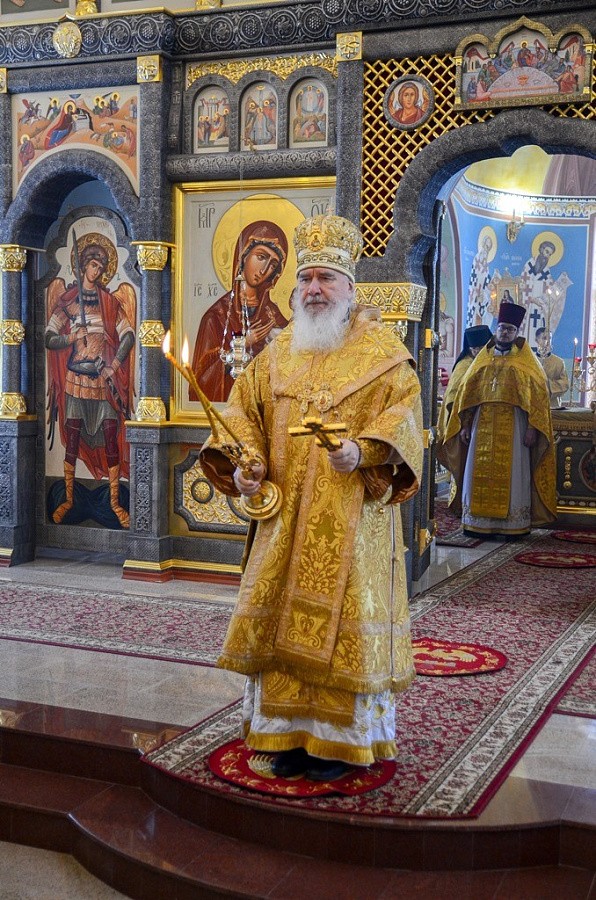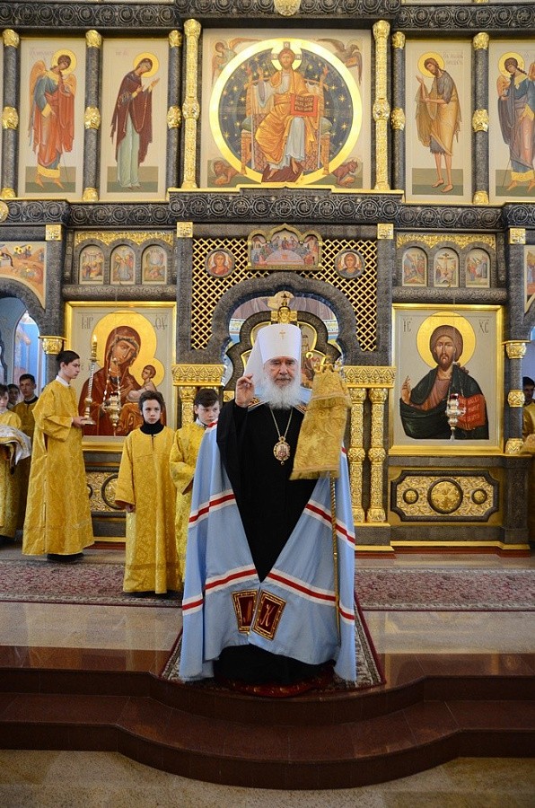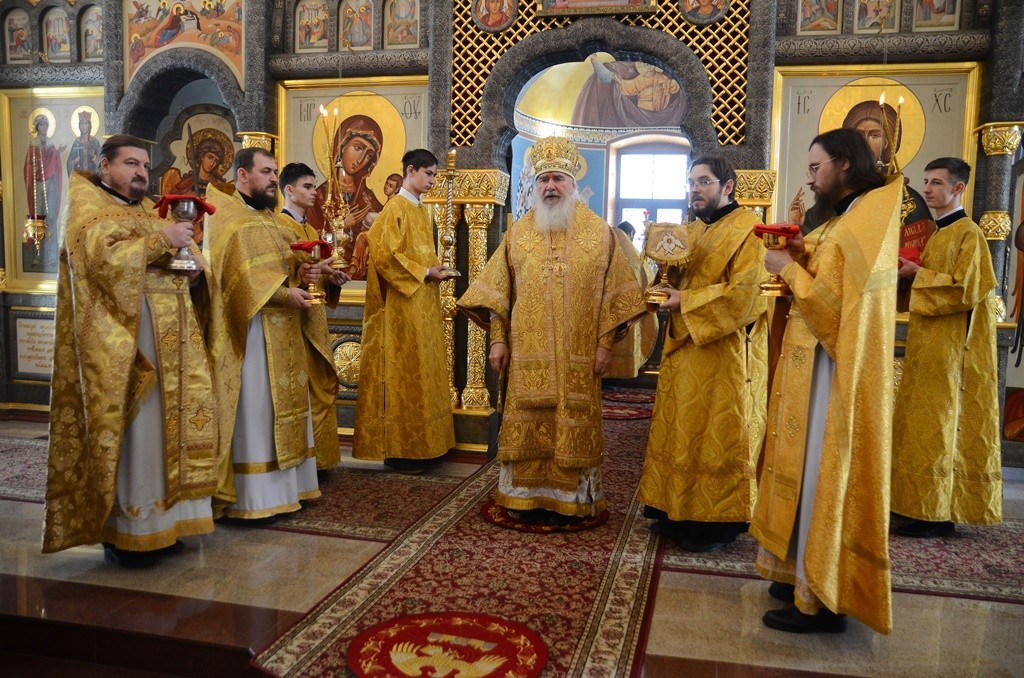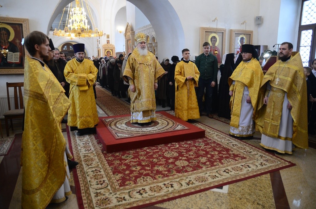 На сугубой ектении были произнесены особые прошения «о единстве святого православия», после чего глава Калужской митрополии вознес молитву о мире на Украине.