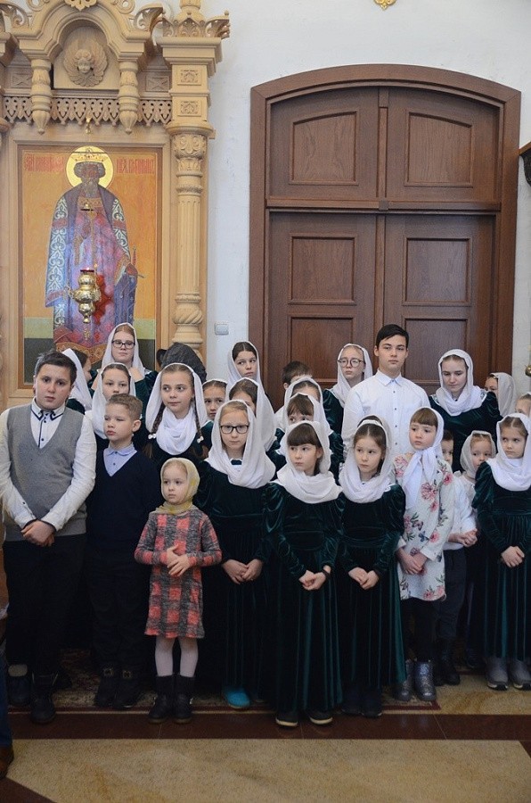 Богослужебные песнопения исполнил хор сестер монастыря и воспитанниц монастырской воскресной школы.