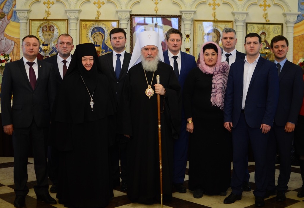 У памятника митрополит Климент отслужил заупокойную литию и обратился с архипастырским словом к собравшимся на площади представителям власти, горожанам, гостям города.