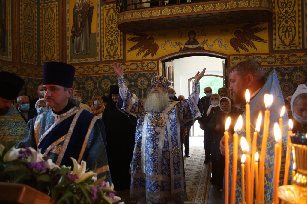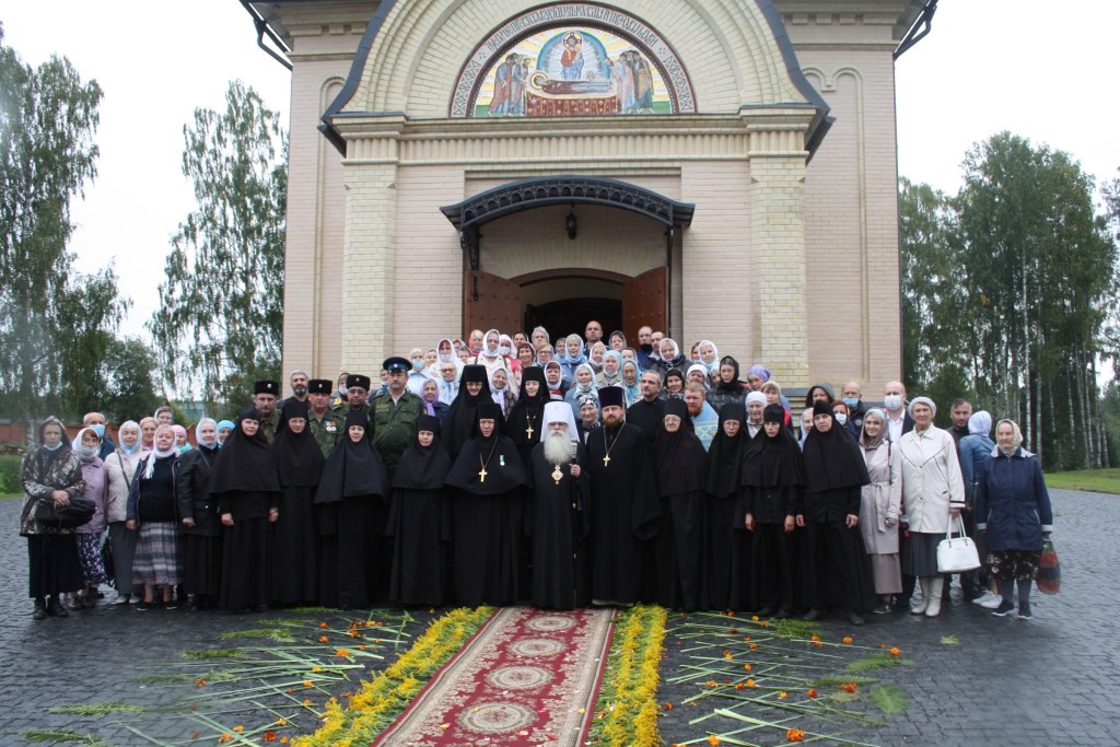 Затем митрополит Константин обратился к собравшимся с архипастырским словом и поздравил с праздником Успения Пресвятой Богородицы. В дар монастырю владыка Константин передал икону свт. Иннокентия Московского с частицей мощей.