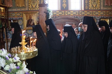 За богослужением молились настоятельница монастыря игумения Варвара (Иванова) с сестрами, представители Министерства национальной и региональной политики Карелии, паломники.