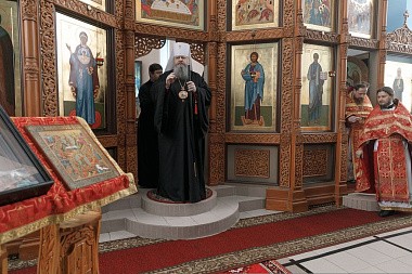 По окончании Литургии митрополит Корнилий поздравил матушку Афанасию, насельниц обители и паломников с престольным праздником.