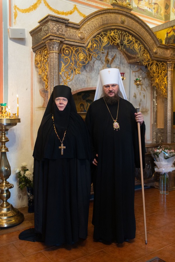 После этого митрополит митрополит Ферапонт представил сестрам святой обители новую настоятельницу монастыря игумению Елену (Гаранову), вручил ей игуменский жезл и произнес слово наставления, пожелав мудро управлять обителью и быть доброй матерью сестрам монастыря.