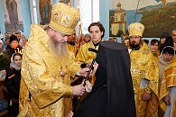 За богослужением молились настоятельница игумения Евфросиния (Горбачева) с сестрами, прихожане Благовещенской обители и клирики Покровского кафедрального собора.