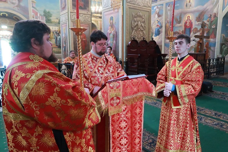 Богослужение сопровождалось пением мужского хора Новгородского духовного училища под управлением регента диакона Андрея Каурова.