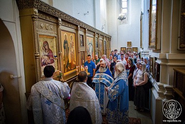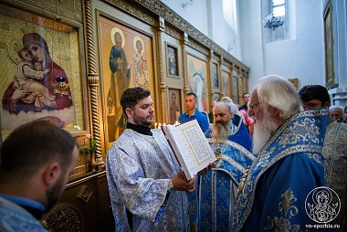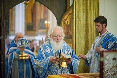 Его Высокопреосвященству сослужили духовник Варлаамо-Хутынского монастыря архимандрит Макарий (Шамсутдинов), клирик Софийского собора иерей Михаил Ершов.