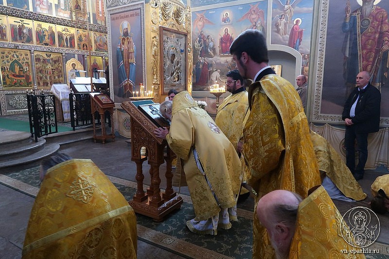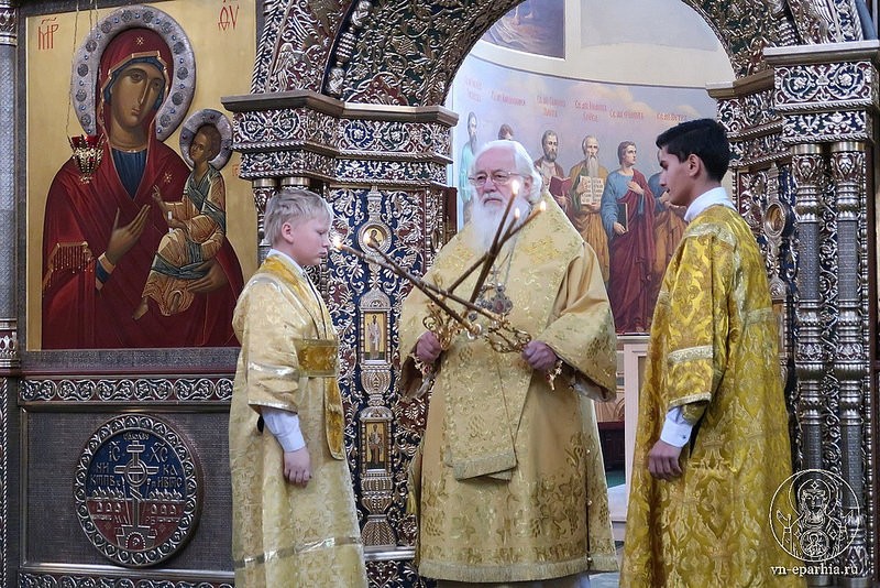 Его Высокопреосвященству сослужили наместник Иверского монастыря иеромонах Антоний (Битьмаев), насельники монастыря иеромонахи Борис (Григорьев), Евсевий (Голубев), Пантелеимон (Шахтахтинский) и клирик Софийского собора иерей Николай Полозов.