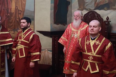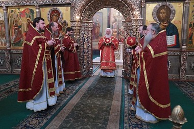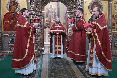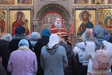 Его Высокопреосвященству сослужили и.о. наместника обители иеромонах Антоний (Битьмаев), насельники монастыря иеромонахи Борис (Григорьев) и Пантелеимон (Шахтахтинский), клирик Софийского собора иерей Николай Полозов.