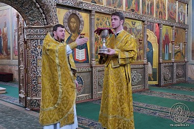 Его Высокопреосвященству сослужили наместник монастыря иеромонах Антоний (Битьмаев), насельники обители иеромонахи Борис (Григорьев), Евсевий (Голубев) и Пантелеимон (Шахтахтинский) и клирик Софийского собора иерей Николай Полозов.