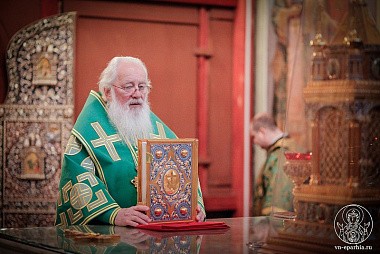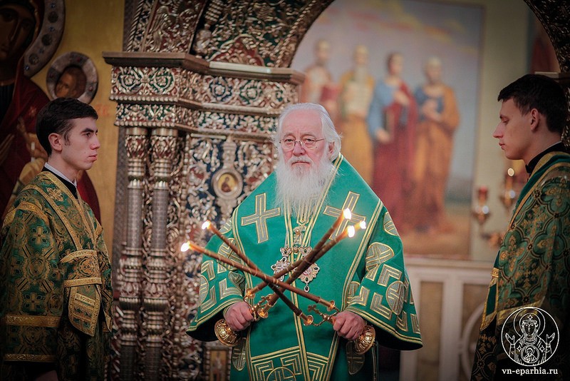 Его Высокопреосвященству сослужили наместник монастыря иеромонах Антоний (Битьмаев), насельники монастыря иеромонахи Борис (Григорьев), Евсевий (Голубев), Серафим (Игнатьев), Пантелеимон (Шахтахтинский) и клирик Софийского собора иерей Николай Полозов.