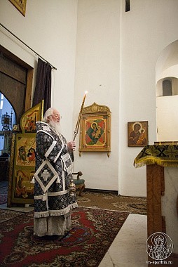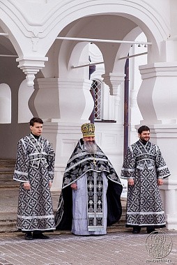 Его Высокопреосвященству сослужили архимандрит Макарий (Шамсутдинов) и клирик Софийского собора иерей Николай Полозов.