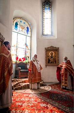 Его Высокопреосвященству сослужили клирик Софийского собора иерей Николай Полозов и штатный священник Варлаамо-Хутынского монастыря архимандрит Макарий (Шамсутдинов).