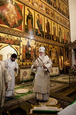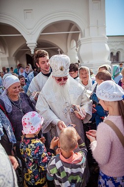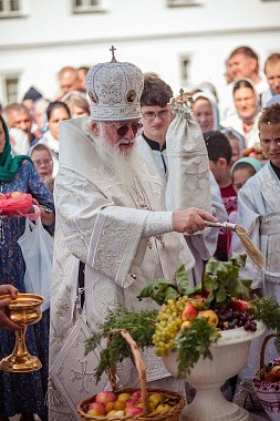 По окончании богослужения владыка поздравил верующих с престольным праздником обители, отметив, что сегодняшний день как бы подводит первую черту под нашими трудами в течение лета, ведь сегодня освящаются фрукты и овощи, которые люди своим трудом взращивали в садах и огородах. «Божие благословение пребудет не только на этих плодах, но и на ваших семьях, и домах. Господь да сопутствует вам в ваших трудах! Дай Бог нам всем дожить до следующего праздника Преображения», – пожелал собравшимся архипастырь.