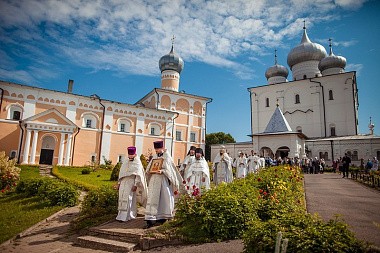 Его Высокопреосвященству сослужили насельник Варлаамо-Хутынского монастыря архимандрит Макарий (Шамсутдинов), наместник Спасо-Преображенской Антоние-Леохновской пустыни архимандрит Митрофан (Письменский), и.о. наместника Иверского монастыря иеромонах Антоний (Битьмаев), и.о. благочинного Свято-Юрьева монастыря иеромонах Григорий (Побожин), штатный клирик Софийского собора иерей Николай Полозов, штатный священник церкви св. ап. Филиппа иерей Павел Демочкин, клирик Санкт-Петербургской митрополии иерей Герман Ранне.