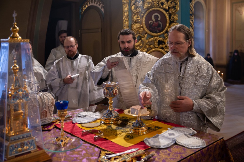 По окончании Литургии была совершена великая архиерейская панихида, за которой верующие молились о родных и близких, уже окончивших земной путь. За этим заупокойным богослужением, призванным восполнить отсутствующие в дни поста ежедневные поминовения усопших, возносилась общая молитва к Богу о милости по отношению к перешедшим в вечность, прощении им их грехов. Для усопших уже окончено время земных подвигов, а от ныне живущих они ждут именно этого дара любви – молитвы.