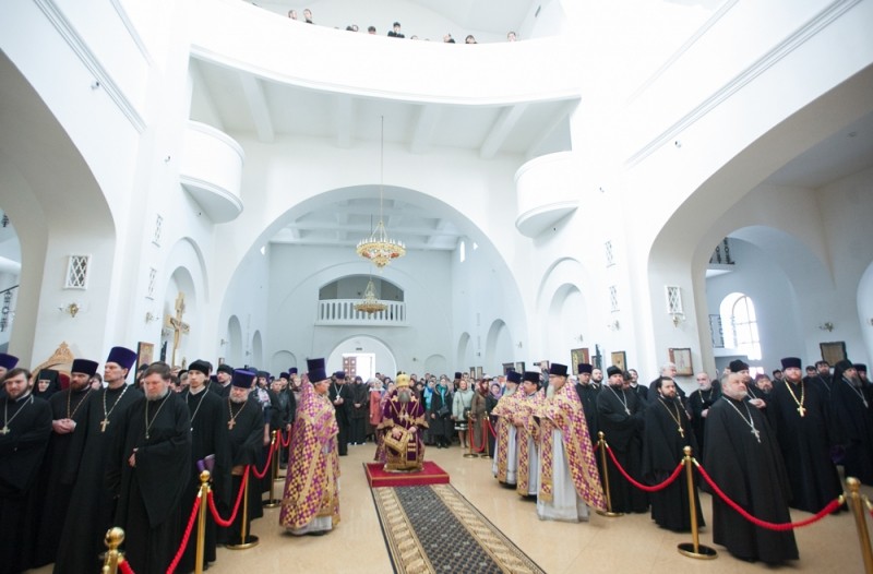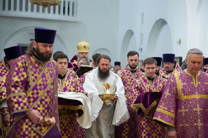 «Мы сегодня собрались в этом великолепном храме Иверского женского монастыря для того, чтобы совершить соборную молитву и общее говение. Говение есть образ покаяния и причащения Святых Христовых Таин. Через покаяние мы воссоединяемся с Церковью Христовой, через покаяние мы начинаем путь обновления своей жизни, который и должны совершить в течение Великого поста. И пусть, может быть, подвигов не так много в нашей жизни и не так много совершений духовных, но это и не самое главное. Самое главное то, что мы имеем сердце, сокрушенное перед Господом, умоляем Спасителя о милости к себе, сознаем свое собственное недостоинство и этим становимся в то положение, обретаем то духовное состояние, на которое Своей милостью и человеколюбием призирает Господь».