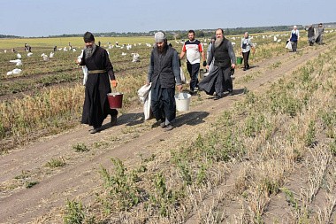В первый же день трудами насельников и паломников обители, среди которых трудились студенты Липецкого государственного технического университета, было собрано пять КАМАЗов урожая.