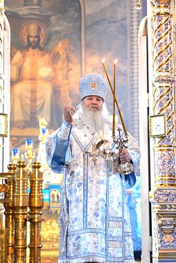 Перед началом богослужения глава Липецкой митрополии поклонился честным мощам святителя Тихона, епископа Воронежского и Задонского чудотворца.