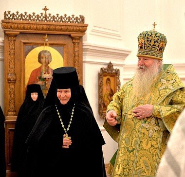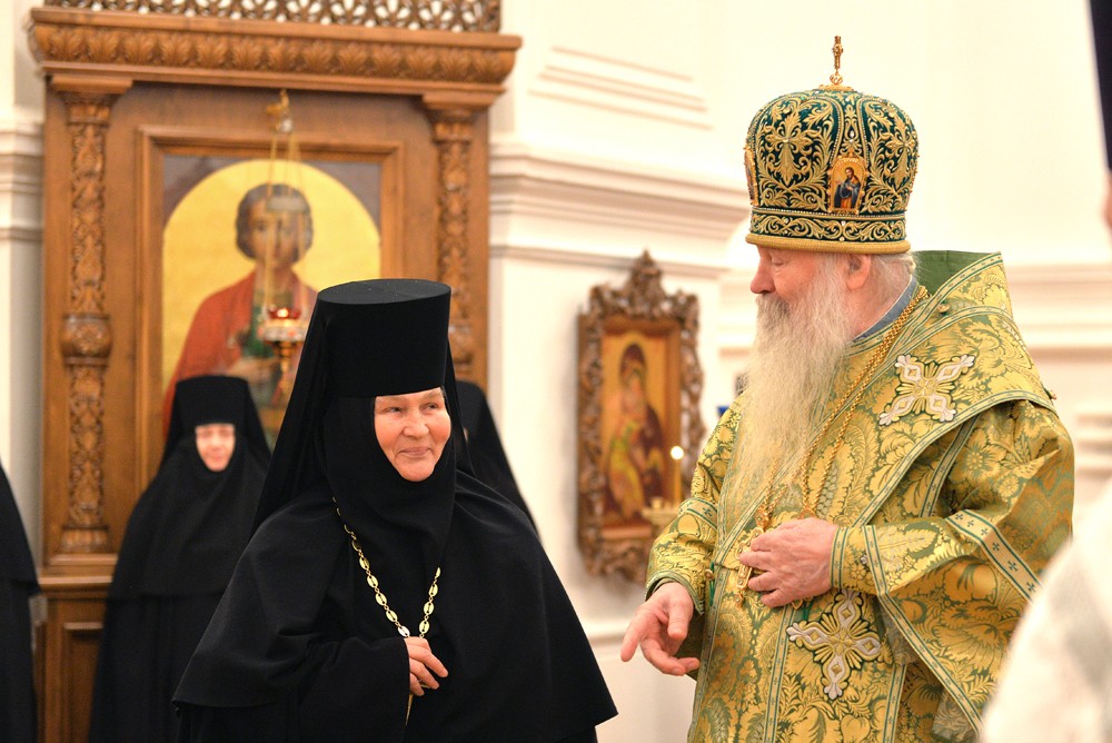 Отметив труды настоятельницы монастыря по возрождению обители, Его Высокопреосвященство вручил игумении Арсении (Семеновой) юбилейную медаль Русской Православной Церкви «В память 100-летия восстановления Патриаршества в Русской Православной Церкви».
