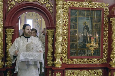 Правящему архиерею сослужили игумен монастыря архимандрит Тихон (Затёкин) с братией в священном сане.