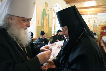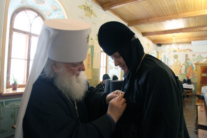 Митрополит Пантелеимон вручил Патриаршие юбилейные медали «100-летие восстановления Патриаршества в Русской Православной Церкви» настоятельнице Свято-Введенского Толгского женского монастыря игумении Варваре (Третьяк) и настоятельнице Казанского женского монастыря игумении Екатерине (Гаевой).
