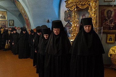 За Литургией молились настоятельница Благовещенского женского монастыря схиигумения Амвросия (Усталова) и монахини обители.