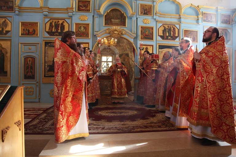 Его Высокопреосвященству сослужили: секретарь Ярославской епархии и настоятель храма Параскевы Пятницы г. Ярославля архимандрит Адриан (Денисов); протоиерей Александр Долганов; настоятель Кирилло-Афанасиевского мужского монастыря г. Ярославля иеромонах Никодим (Федоров); наместник Спасо-Яковлевского мужского монастыря г. Ростова Великого игумен Августин (Неводничек); руководитель Отдела религиозного образования и катехизации Ярославской митрополии и настоятель Сретенского храма г. Ярославля протоиерей Павел Рахлин; настоятель Вознесенско-Благовещенского храма г. Ярославля иеромонах Агафангел (Шкуранков); штатные клирики монастыря и священнослужители Ярославской епархии.