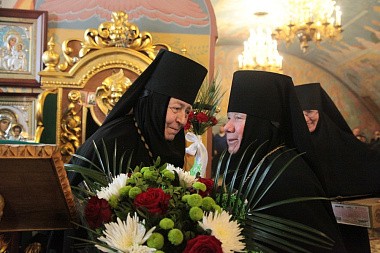 Его Высокопреосвященству в этот праздничный день в Крестовоздвиженском храме обители сослужили клирики Ярославской епархии.