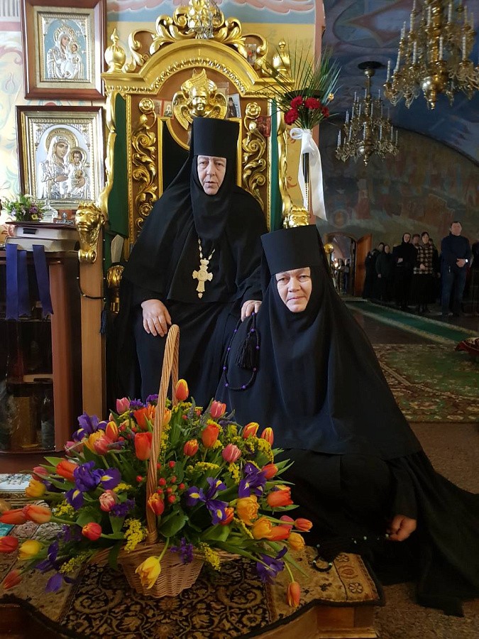 Затем прозвучали поздравления с днем рождения в адрес настоятельницы монастыря игумении Варвары (Третьяк).